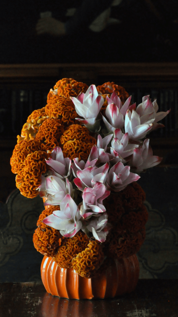 La mia attitude ed ispirazione deriva dal mio amore per l’arte, in particolare i quadri di natura morta del 1600-1800. Fiori uniti a frutta.